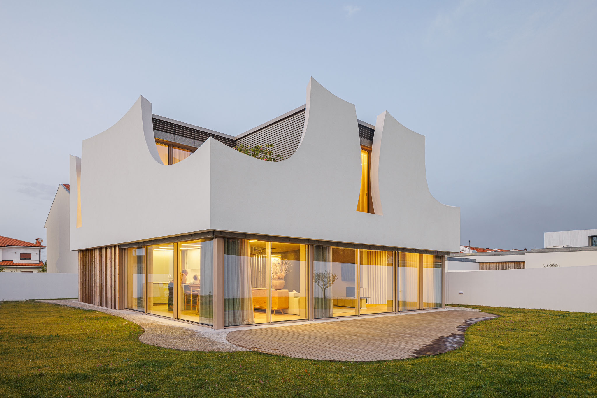 Like a flower, the house “patios of petals” is fed and protected from the sun. It touches the floor simply, with a large “U” glazing. An internal curved structural wall that together with the heart of the house (the stairs), builds its interior.