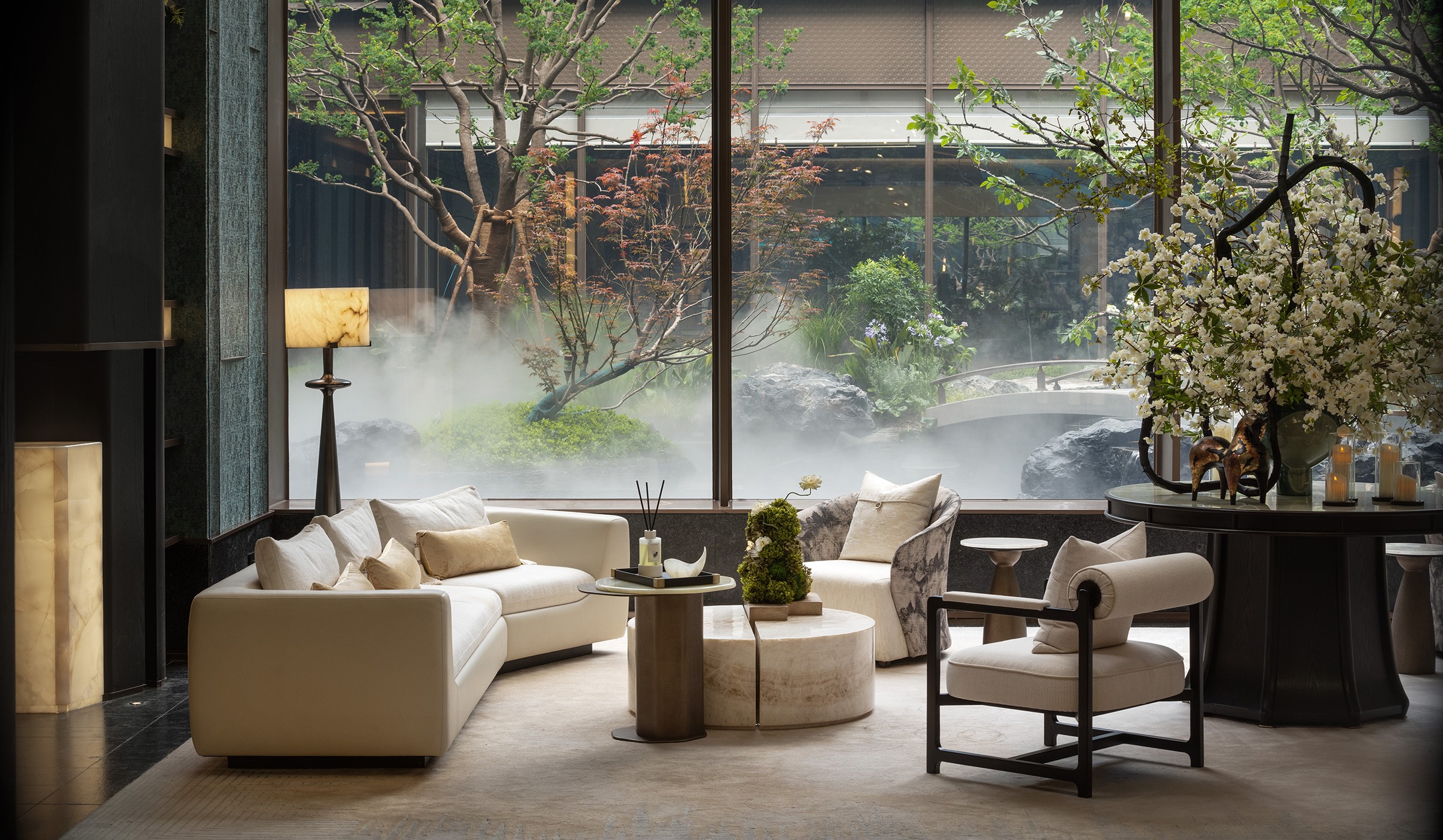 The functional zoning of the clubhouse is centered around the central courtyard space. The designer captures the elegance of the past through contemporary design, creating a spatial experience that embodies the charm of Oriental aesthetics. The color scheme is inspired by Liu Songnian’s “Immortal Mountain and Pavilion” and the sky blue of Ru Kiln, bringing the charm of an Oriental garden to the community’s visitors.