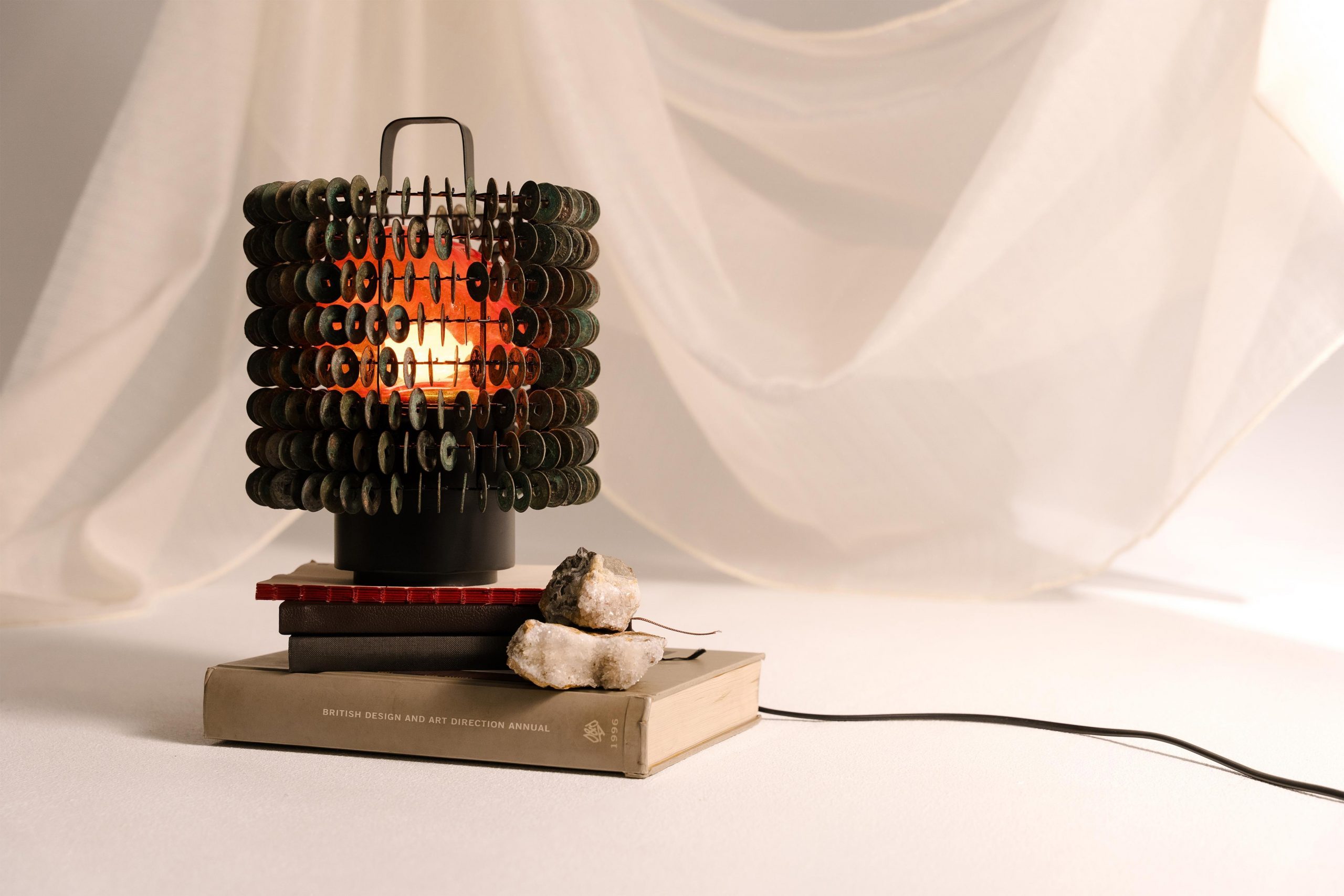 Chinese burial coins as a fundamental inspiration of ROH table lamp. Photo credit: Rafi Ramadani, Andre Christian, and Untold studio